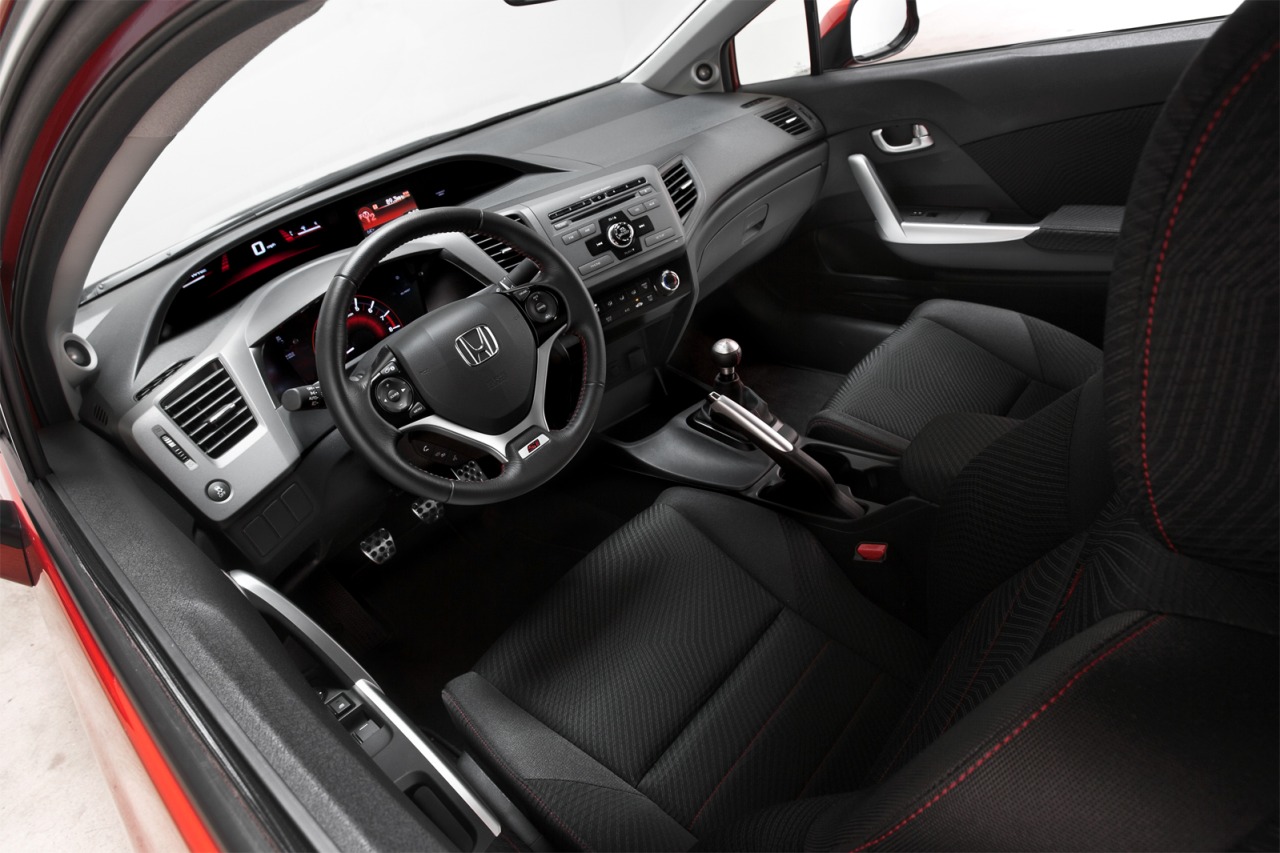 Обзор в данной модели не на высоте: его изрядно затрудняют огромные передние стойки, завышенная линия ремня безопасности и задняя стойка. И как почти у всех купе, доступ к заднему сидению затруднен, возврат же любого из передних сидений в положение, когда на нем может сидеть взрослый человек мог бы быть намного проще, будь эти сидения оснащены «механической памятью». Места для ног пассажиров на заднем сидении достаточно, а вот места для головы некоторым может не хватить. В общем, в Civic Si Coupe присутствуют все компромиссы, характерные для небольших купе.
