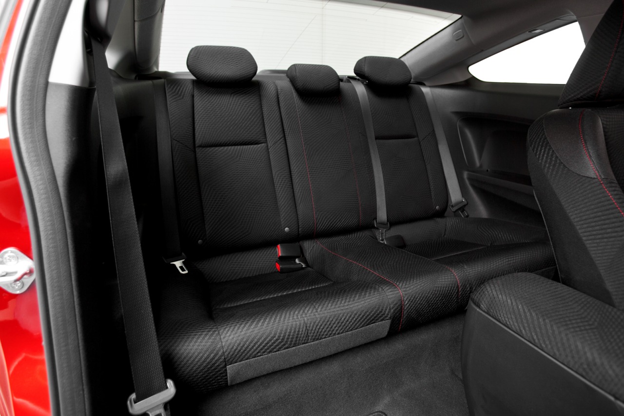 Обзор в данной модели не на высоте: его изрядно затрудняют огромные передние стойки, завышенная линия ремня безопасности и задняя стойка. И как почти у всех купе, доступ к заднему сидению затруднен, возврат же любого из передних сидений в положение, когда на нем может сидеть взрослый человек мог бы быть намного проще, будь эти сидения оснащены «механической памятью». Места для ног пассажиров на заднем сидении достаточно, а вот места для головы некоторым может не хватить. В общем, в Civic Si Coupe присутствуют все компромиссы, характерные для небольших купе.
