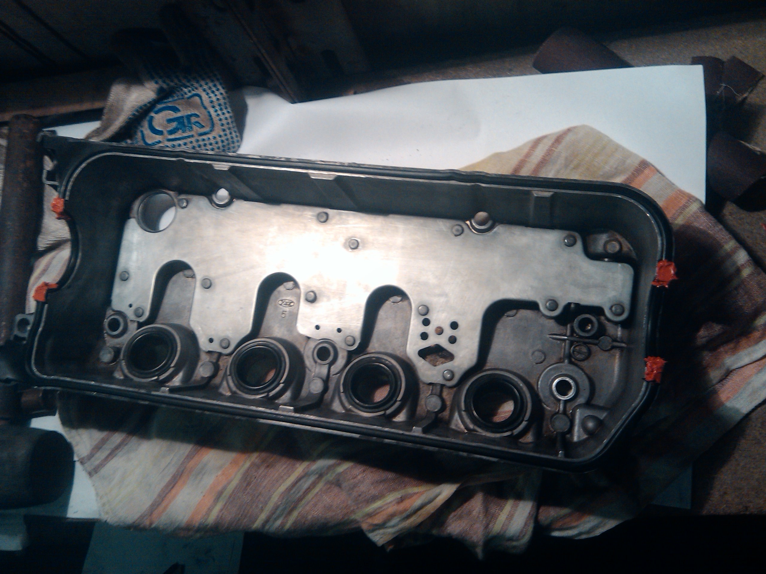 Когда закупал детали для капиталки, заказал за одно болт клапанной крышки, т.к. один у меня был почему-то самодельный. После установки крышки выяснилось почему. Похоже до этого болт провернули и сломали, после чего высверлили остатки и отверстия нарезали резьбу большим диаметром и поставили самодельный болт. Результате купленный болт так и не пригодился. Эти болты затягиваются усилием 10 Н.м. и без динаметрического ключа их лучше не крутить. Но в результате каких-то внешних сил походу один болт я перетянул. Но сломался он не вовремя затяжки, а наоборот вовремя откручивания, когда я решил повторно отрегулировать клапана.