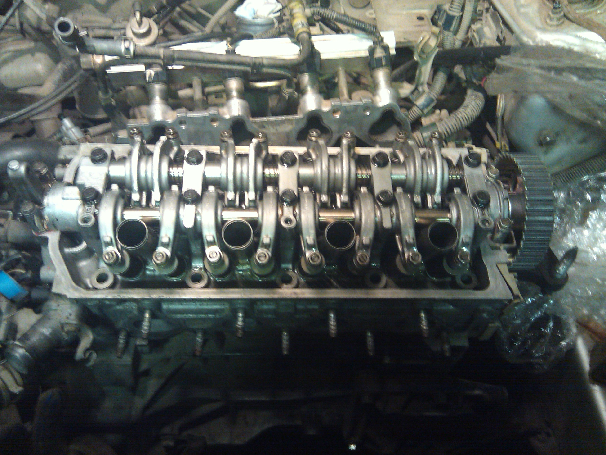 Вторая проблема оказалась более серьезной. При затягивании ролика натяжителя ремня ГРМ, у меня под рукой не было нано ключа и затянул я его как говорится на глаз. И как потом выяснилось зря я так сделал. В саамы не подходящий момент со стороны ГРМ пошел некий шум и как потом показало вскрытие ремень просто не был достаточно натянут. Сначала я почему-то погрешил на пружинку натяжителя. Но после разборки ремня выяснилось более ужасное происшествие. Кода я затягивал ролик ремня ГРМ провернул резьбу внутри отверстия. Болт сначала держал, но потом все такие его расколбасило. Не много погоревав и подумал выяснилось что глубина технологического отверстия в блоке куда крепиться ролик намного глубже по длине болта использованного.В результате нашел болт по длиннее затянул динаметрическим ключом, вроде пока все нормально. Езжу слежу по за ним. Вот такие пироги не повторяйте мои ошибки.