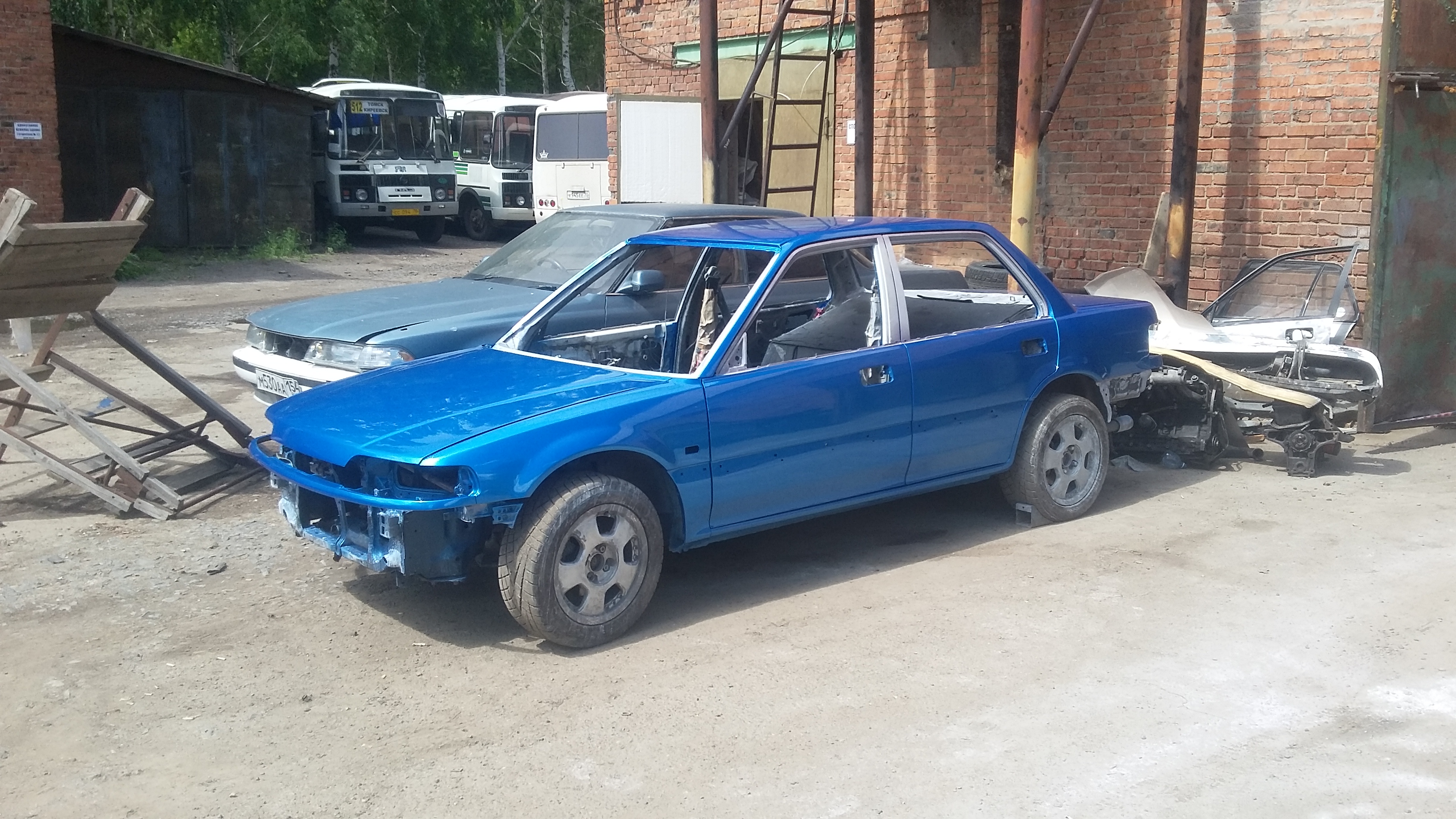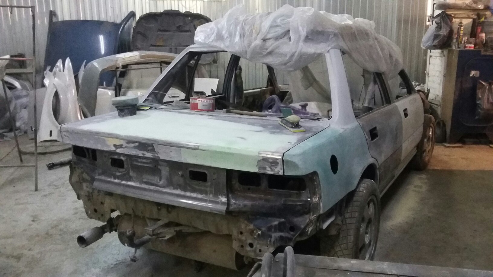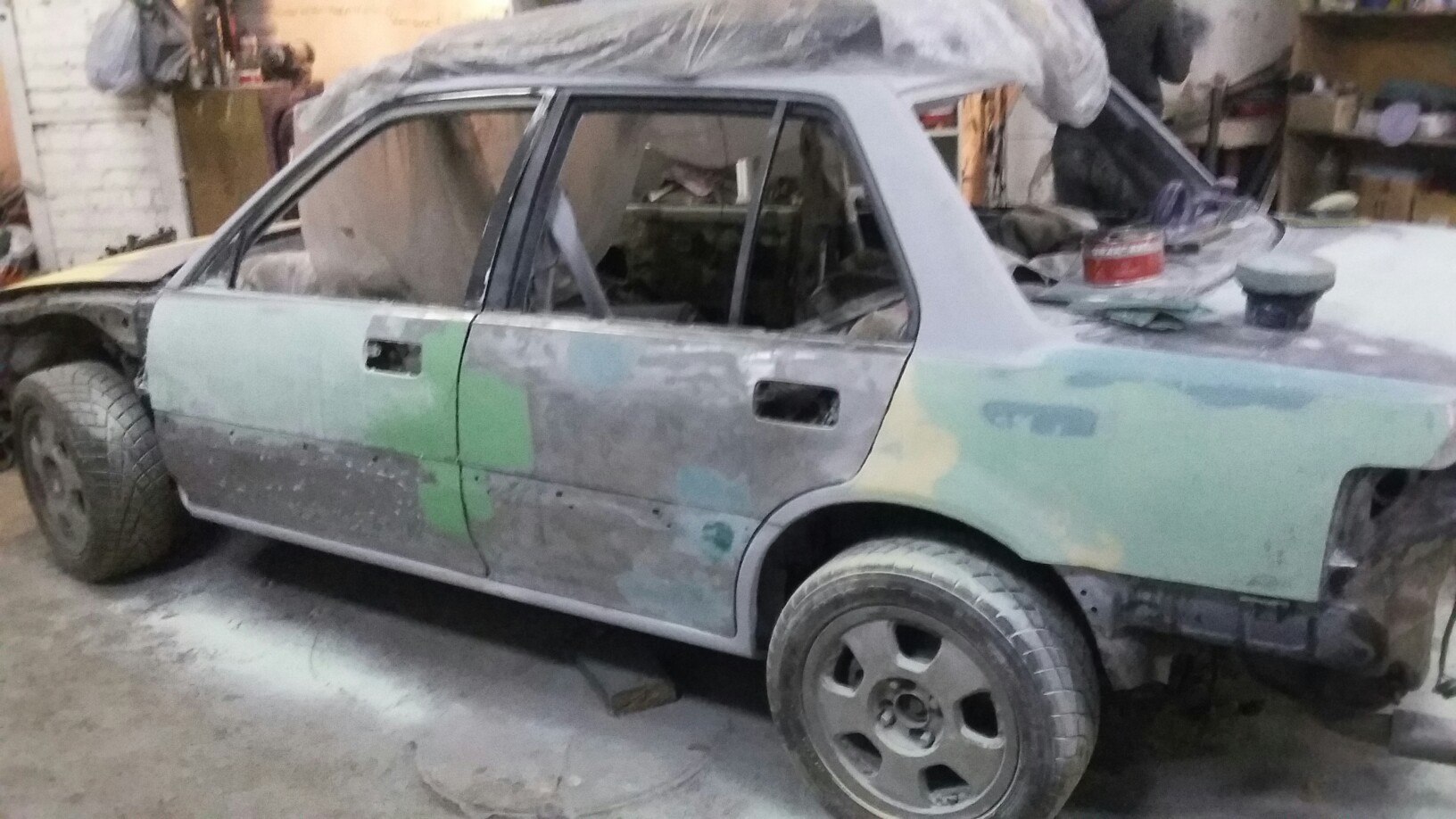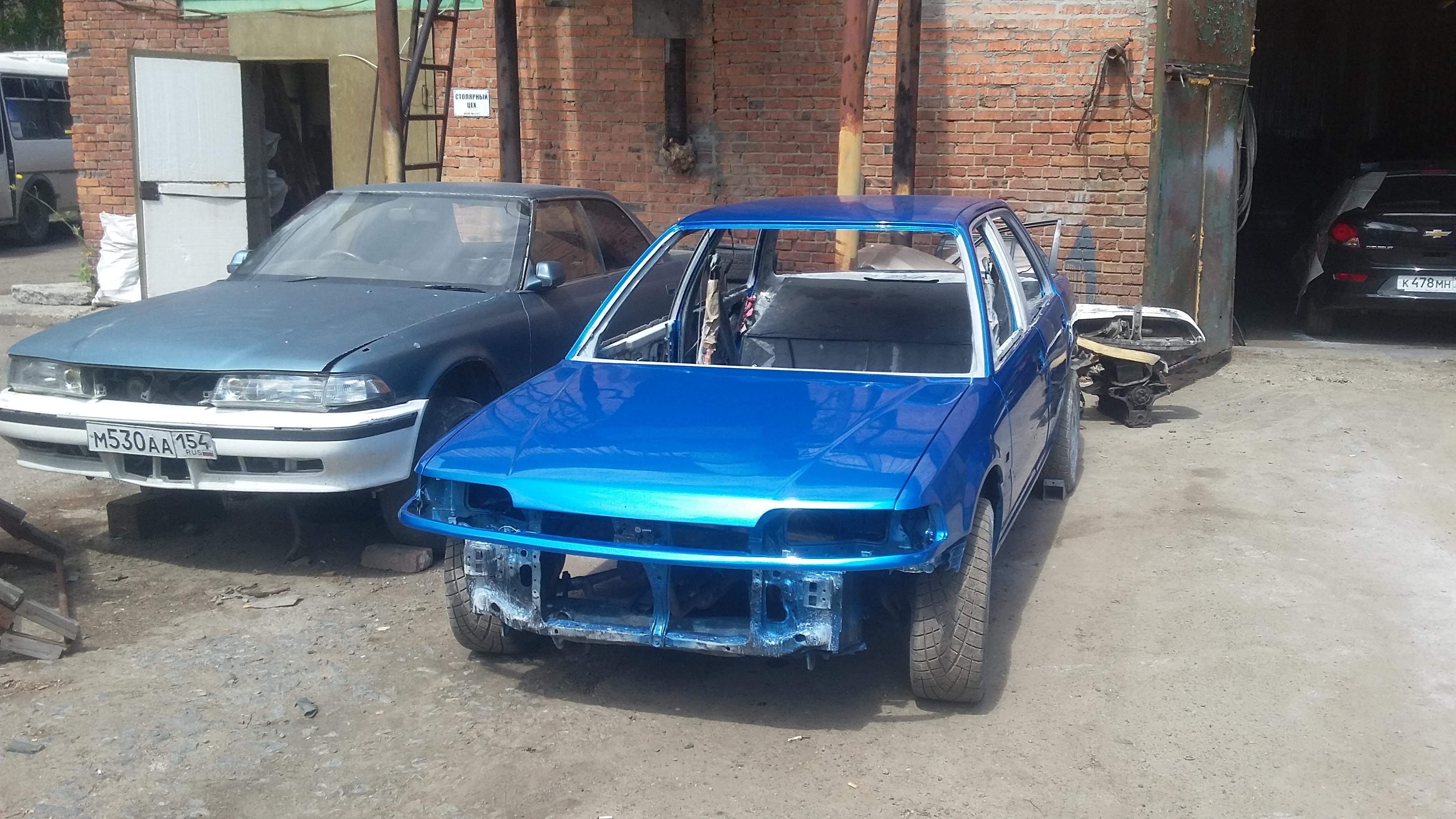 машину дошпаклевали, подготовили к покраске, заместо проявки задули первой попавшейся краской! по фото видно и зазоры и в каком состоянии теперь кузов! дальше было много споров, обсуждений, просмотров палитр и видосов с интернета, даже два раза ездил в автоэмали и в итоге был выбран цвет от Лотуса под наименованием Laser Blue! конечно то что это фирменный цвет лотуса далеко не последнюю роль в выборе сыграло. в итоге пока совершенно не разочарован выбором