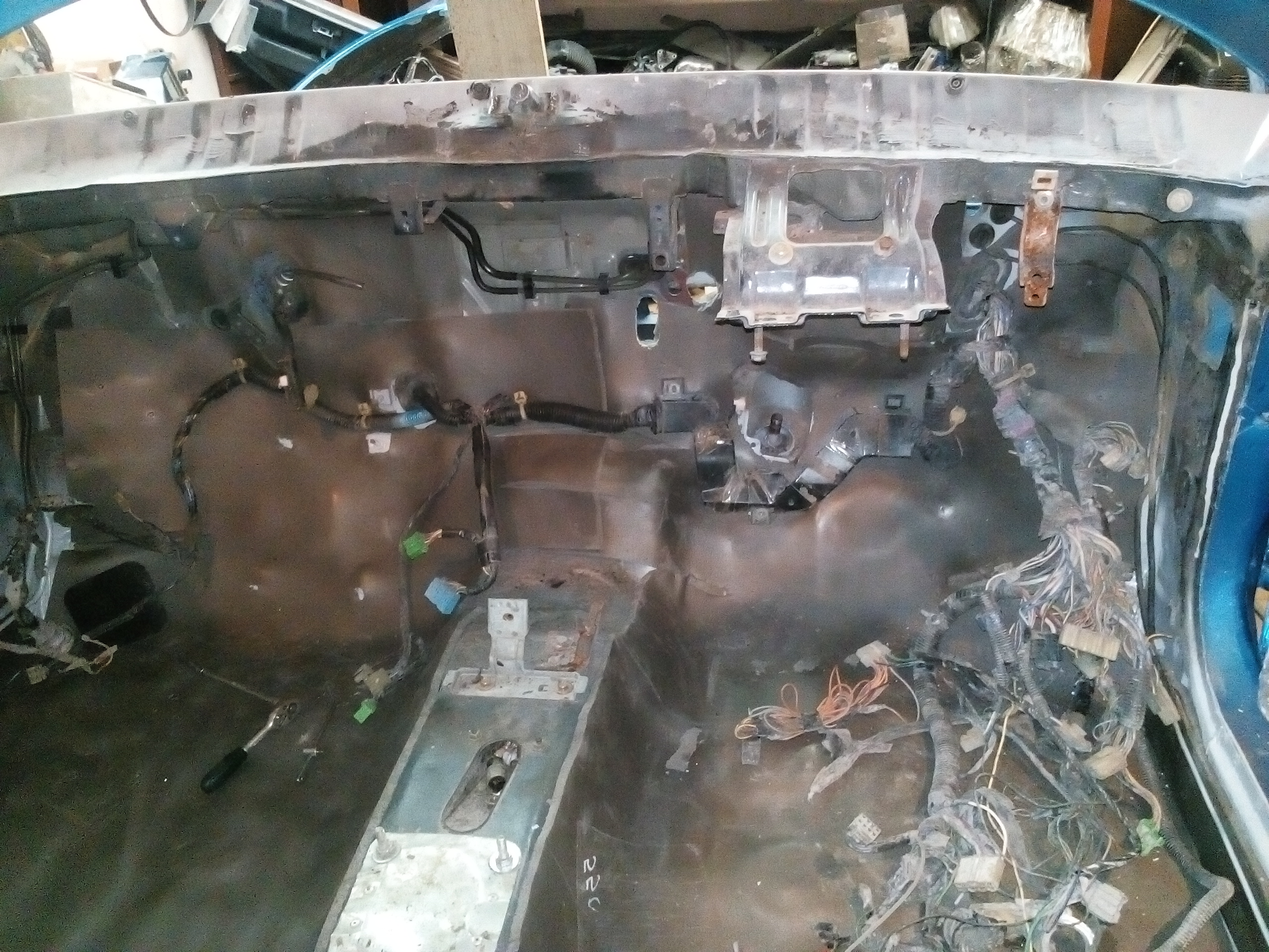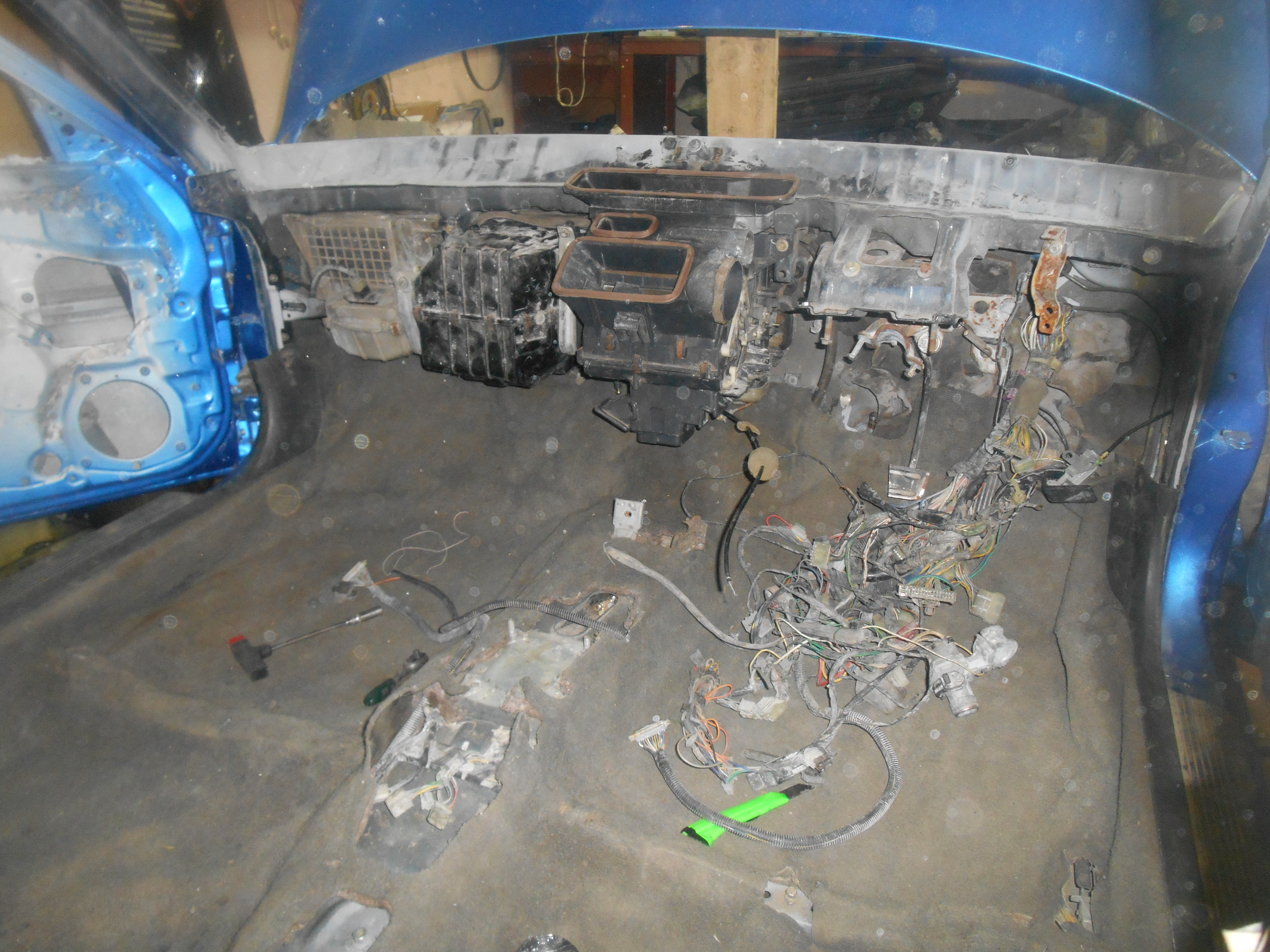 дальше накинул салонную проводку. надо будет справа где блок предохранителей изоленту перемотать завтра надо ковер уже ложить, да печку собирать.