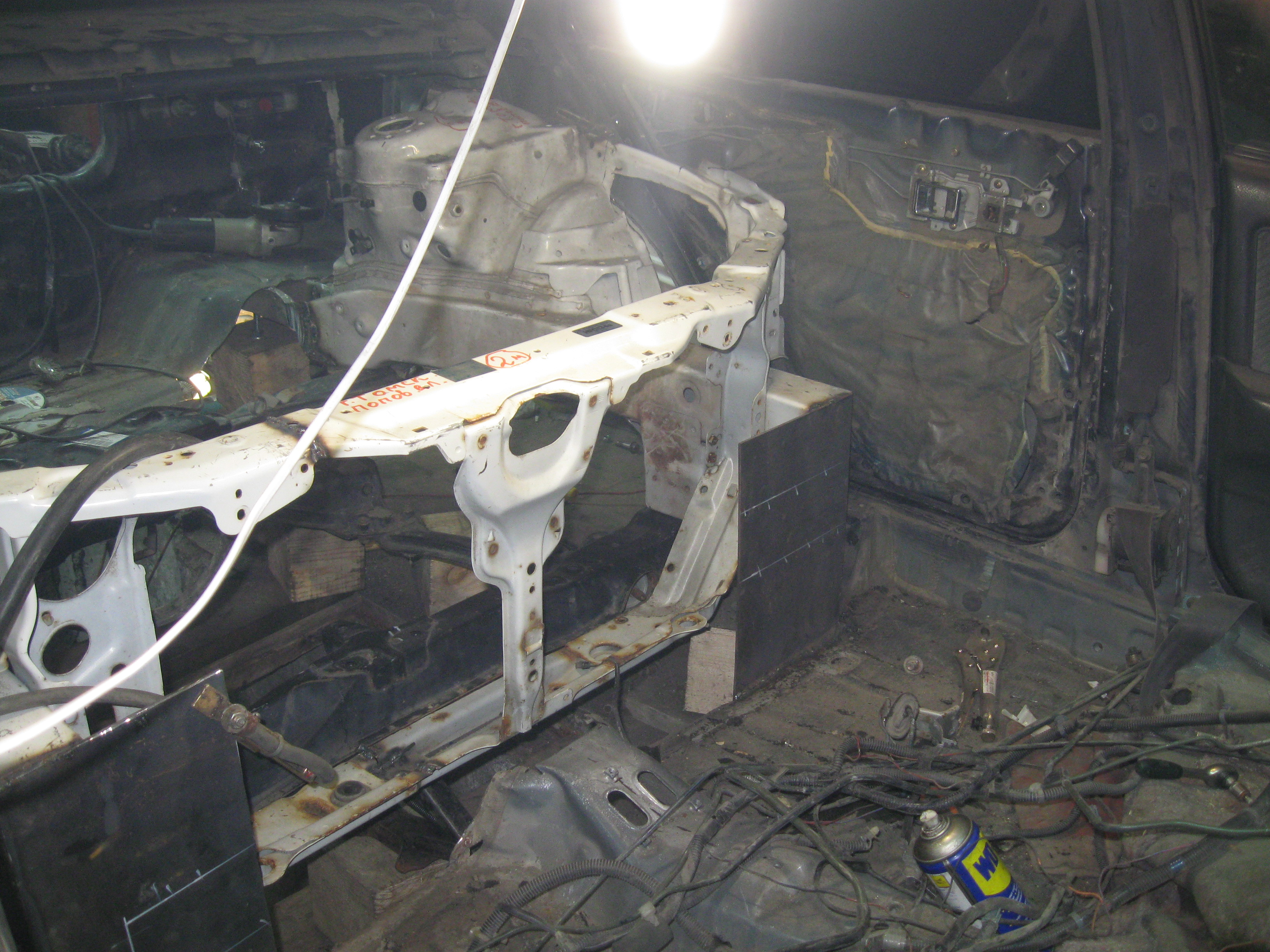 сегодня начали делать силовую часть кузова. задние лонжероны срастил саня томск2001, за что ему громаднеешее спасибо. переднюю часть я начал делать сам, но тоже по его советам. думаю через пару дней железные работы уже будут закончены и можно будет думать над антикором и герметиком.