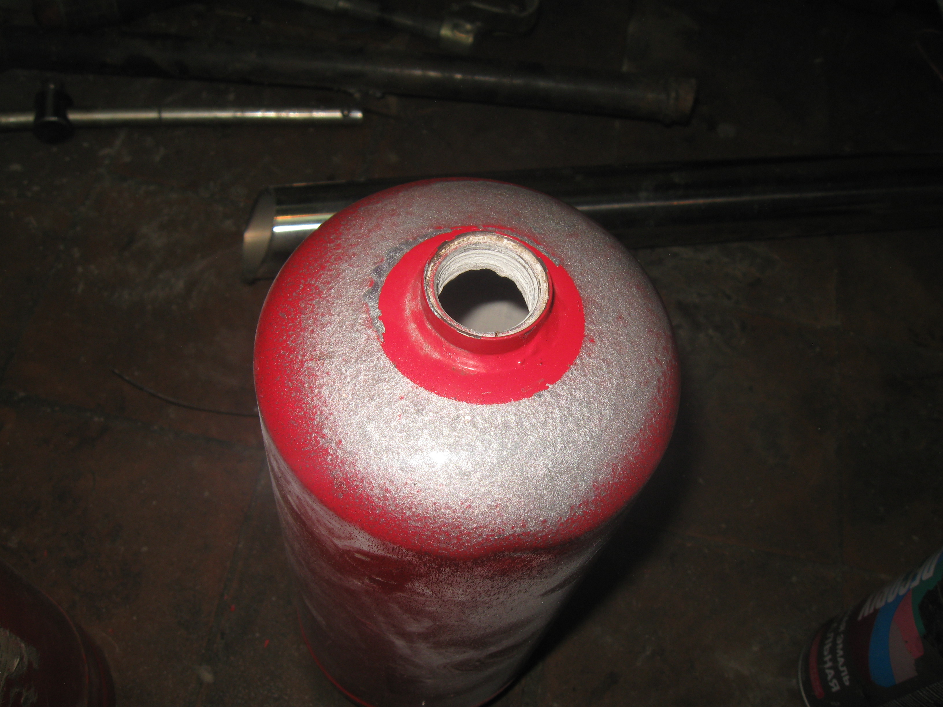 для этих целей берем огнетушитель порошковый обычный автомобильный 2шт. у меня два штуки валялось с тех времен когда их нужно было предьявлять на техосмотре. откручиваем вентили, высыпаем из них порошок. кстати в одном было намного меньше порошка чем в другом.