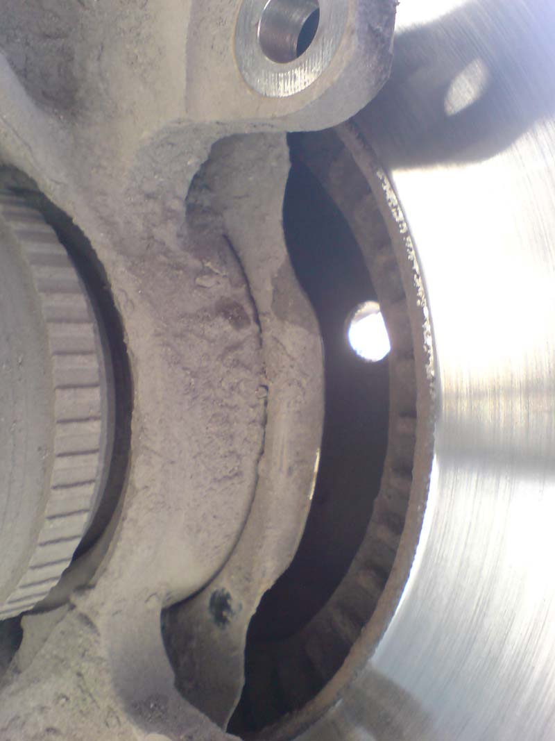 снимаем тормозной диск, отгибаем кожух назад и вколачиваем шпильку, кожух на удивление магкий можно даж пальцами отогнуть.