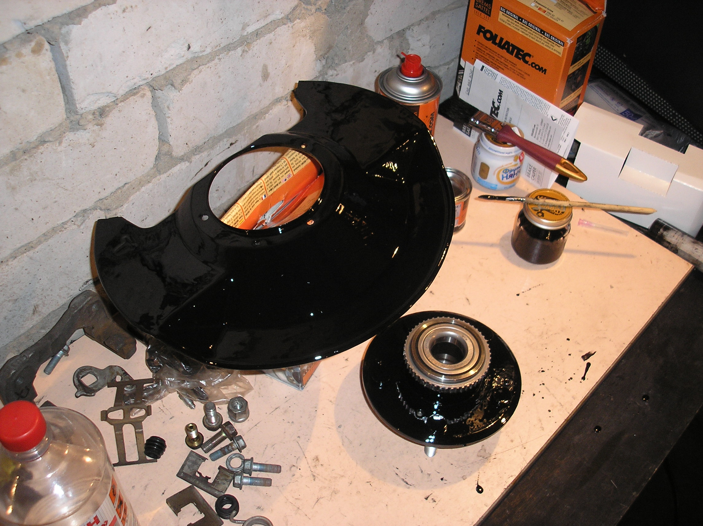 Покрасил кожухи от донора - они встают вместо моих старых. Покрасил сами роторы. Краска глянцевая - ну, такая попалась. Красил чисто чтоб не ржавели.
