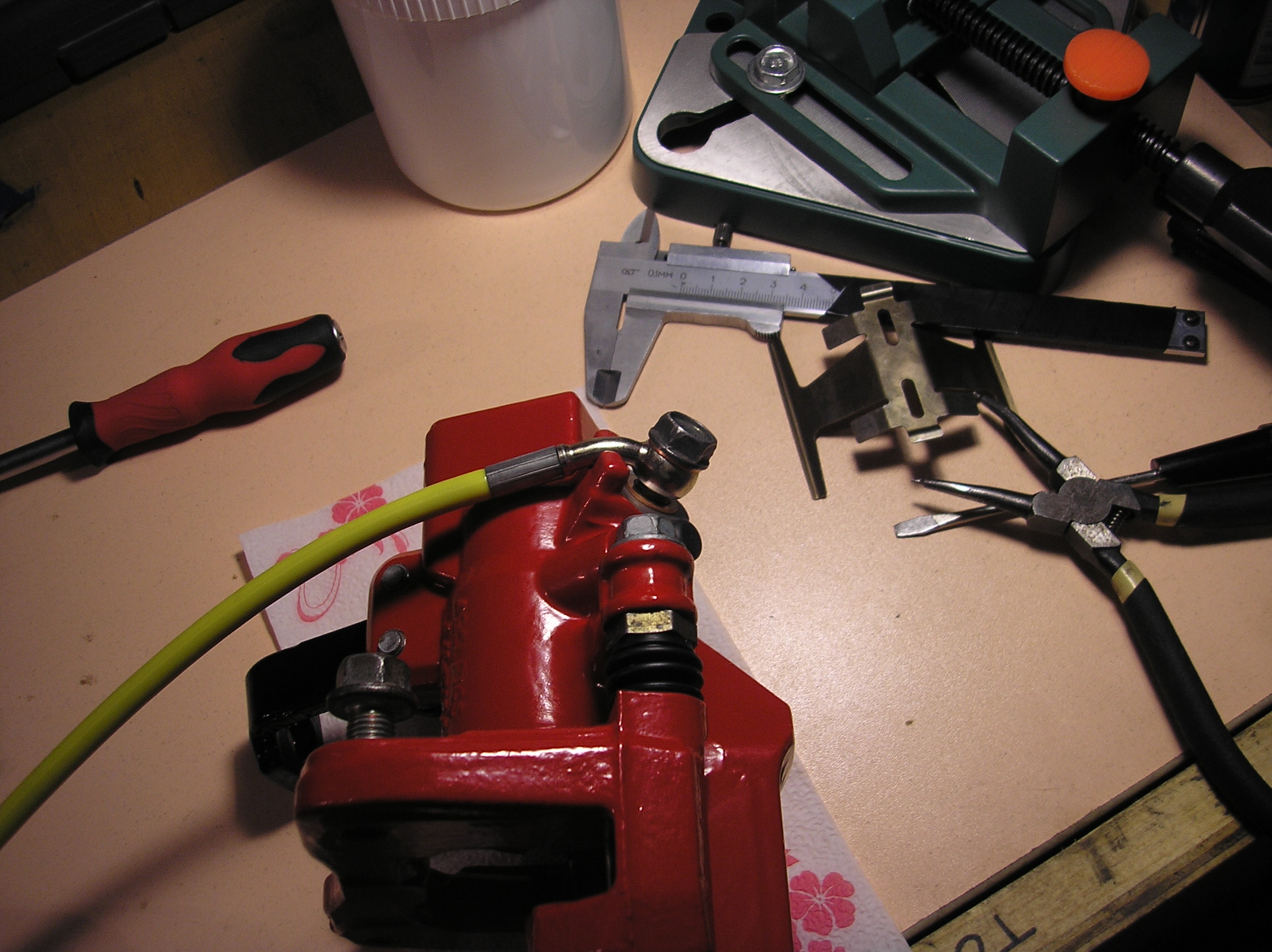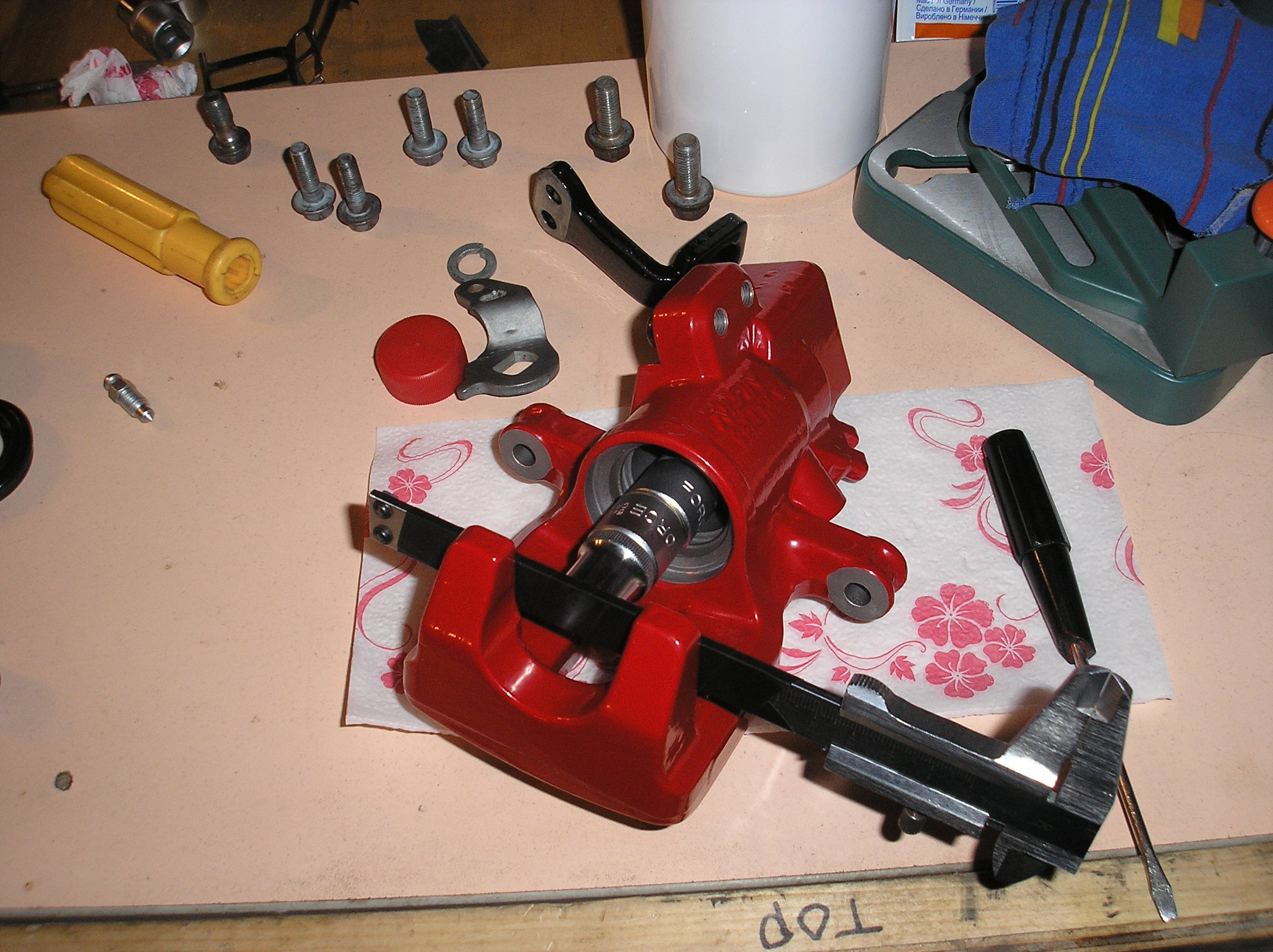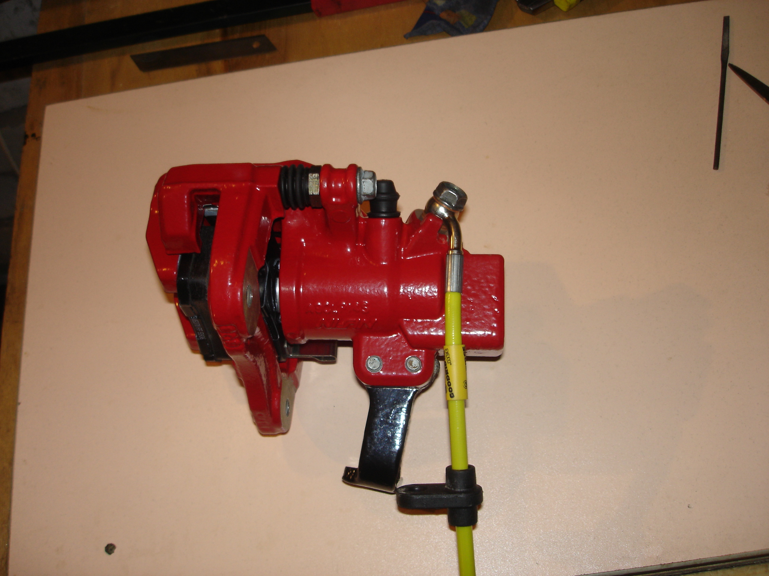 Задняя скоба после ребилда. Резинки пыльников снаружи обработал силиконом, начитался форумов разных. Ну и ага, вслед за передом разобрал я и задние супорты, и перекрасил их тоже