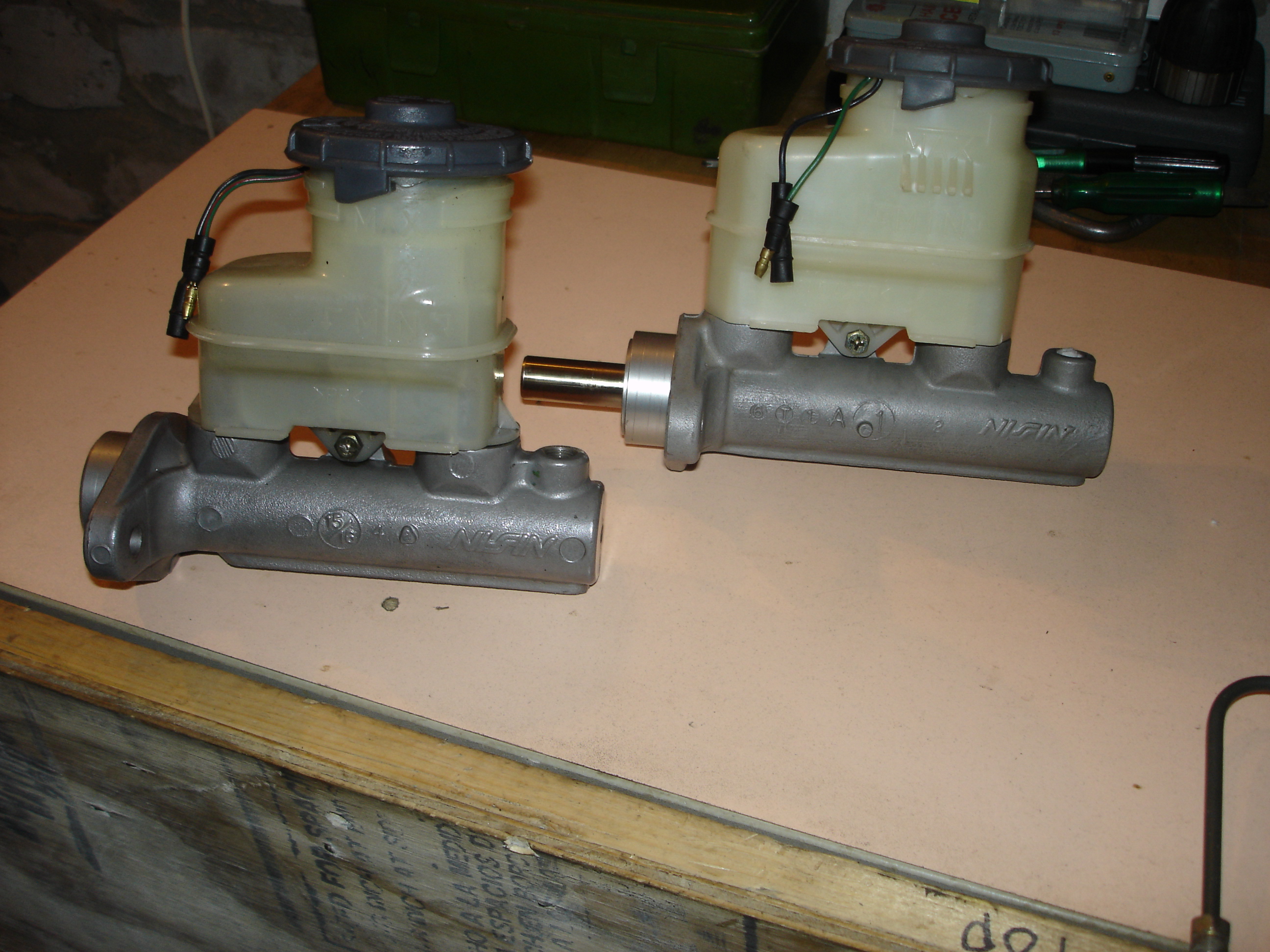 Задние машинки. Вообще надо конечно брать машинки 9CLP14S от EK9 или от DC2 Spec 98+ и ставить их болт он. Но блеать найти эти штуки очень сложно, особенно отдельно от всей задней подвески. И дорого. По слухам можно привезти с Яхи тысяч за 10. Машинки от DC5 (A9CLP14S) стоили мне 4 тыр, и их было много и всюду. Главный их недостаток - для того чтобы они встали на EK их нужно перевернуть. Это создает некоторые неудобства при прокачке тормозов %) Второй момент - тросы ручника на DC5 другие. Эта проблема решается легко, так как рычажки и крепежи подходят от родных машинок (фото слева)