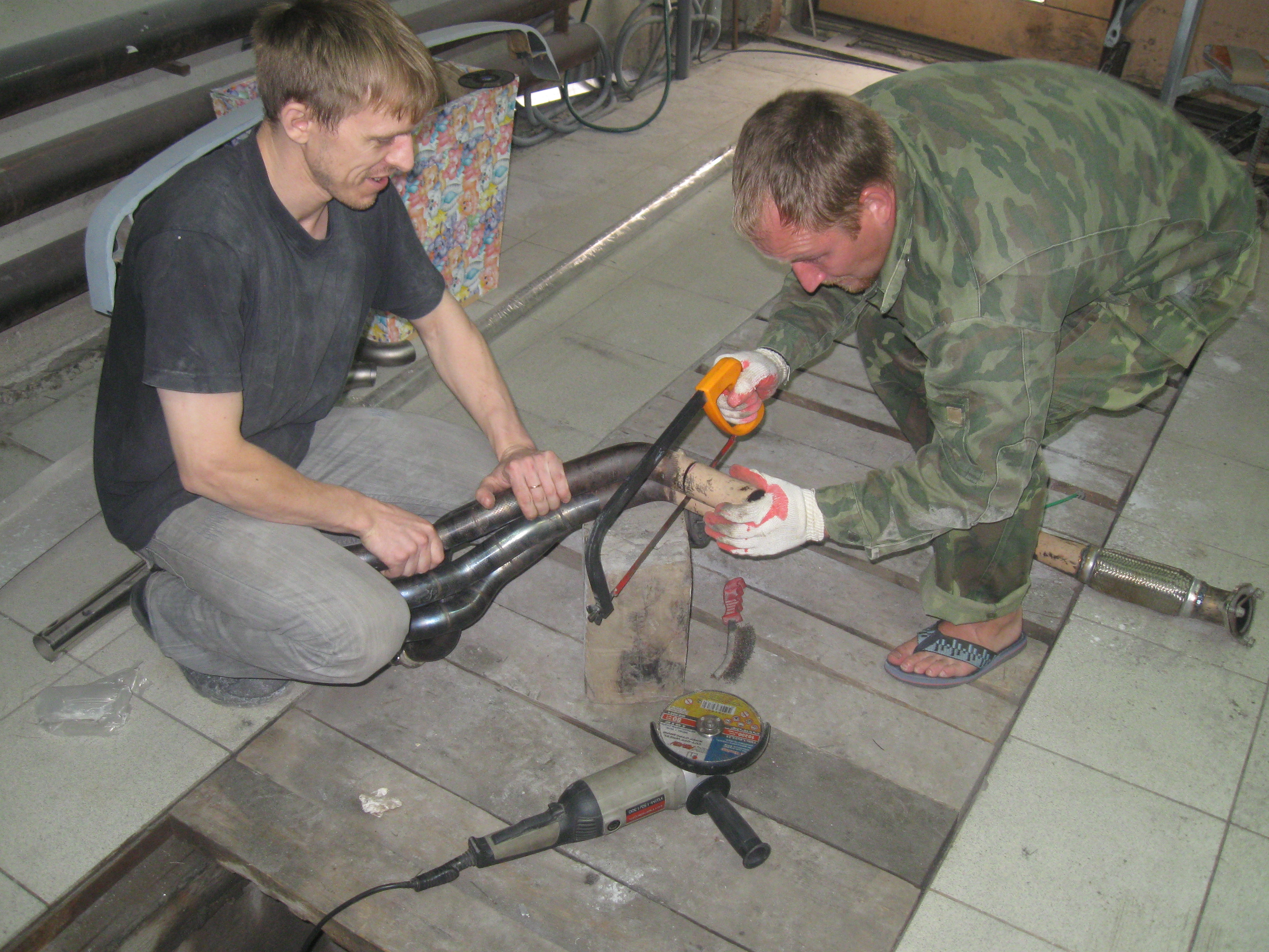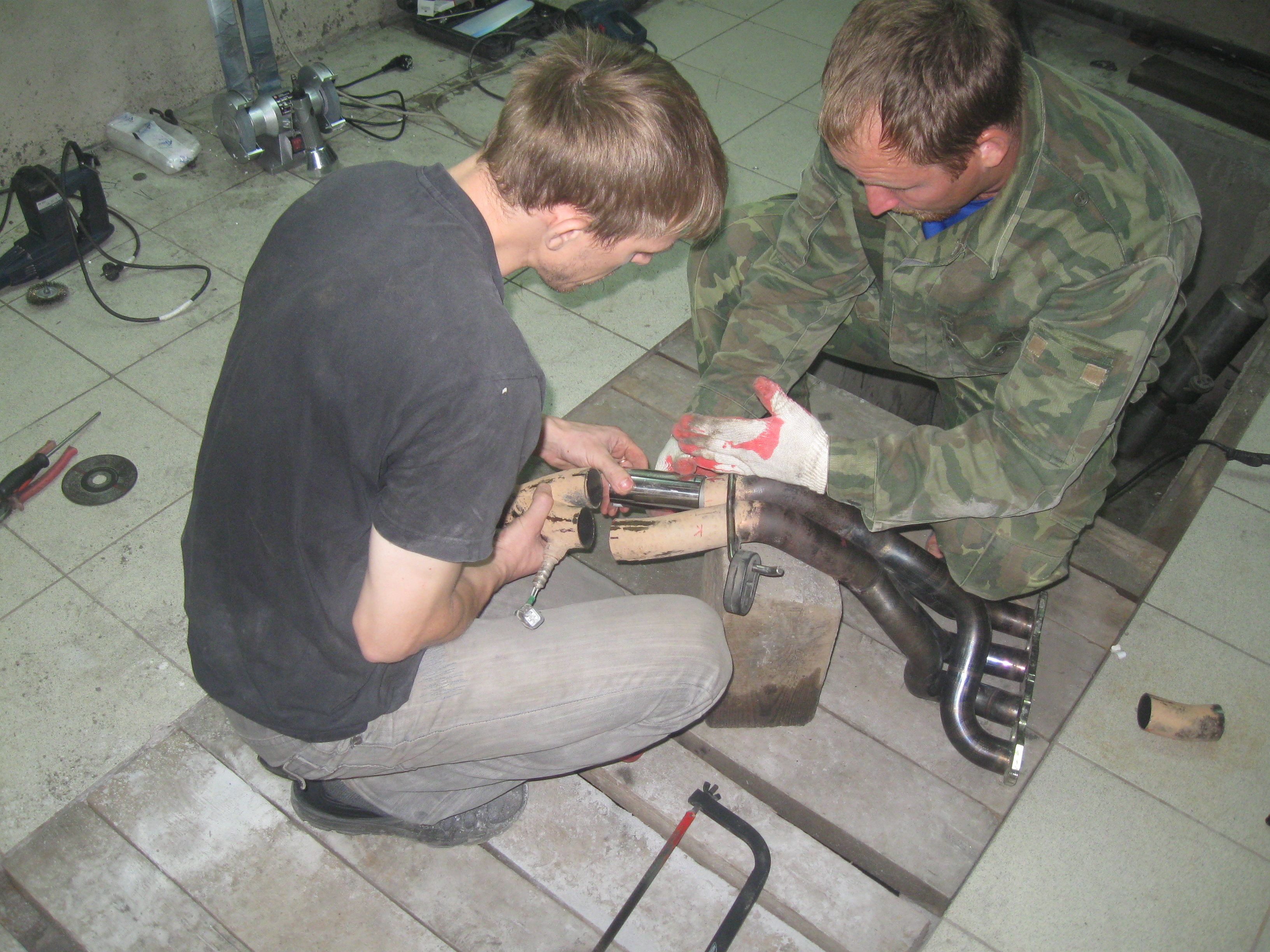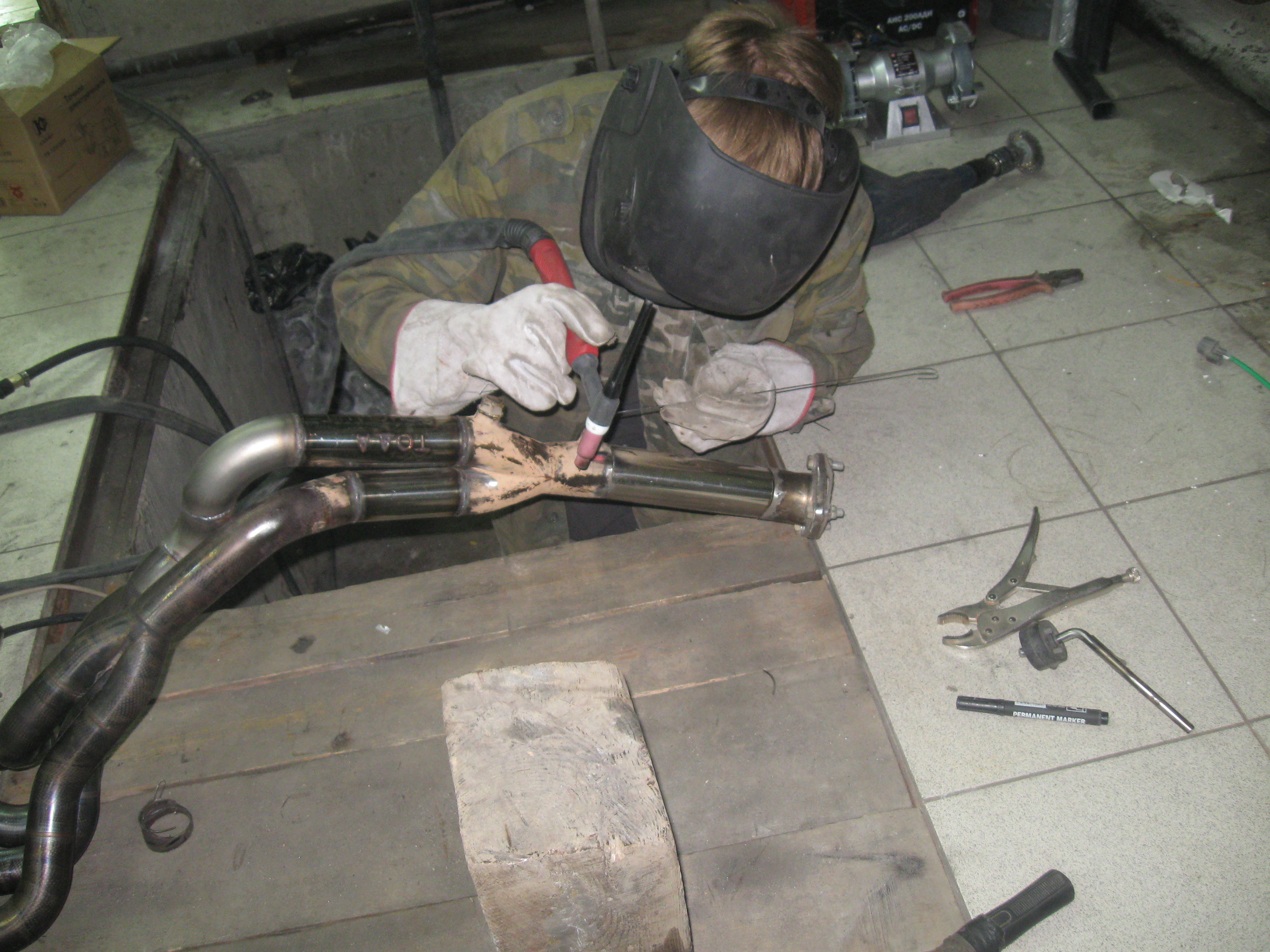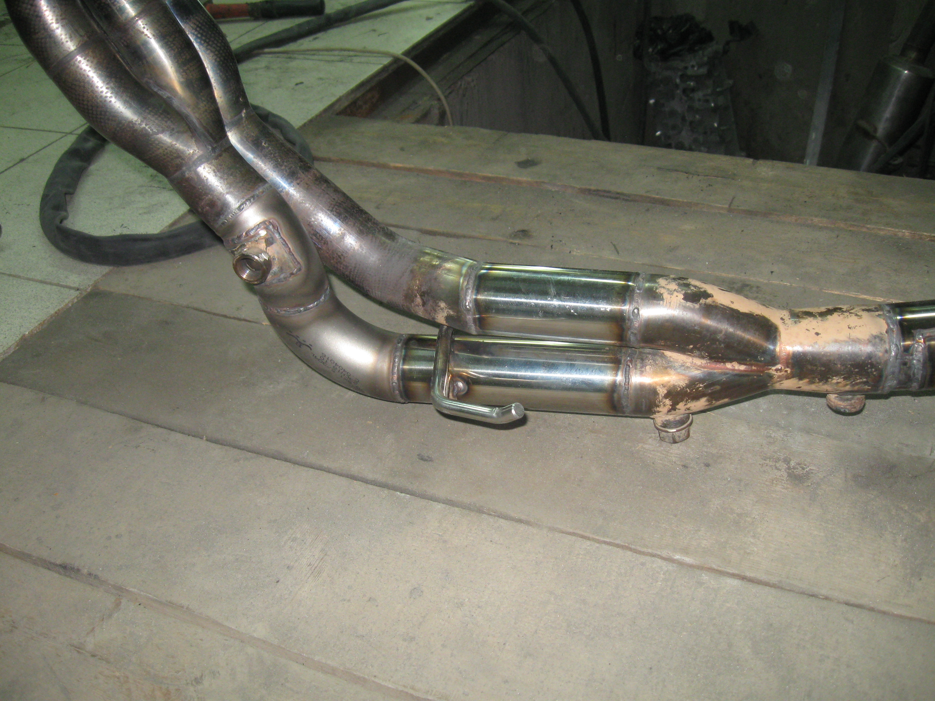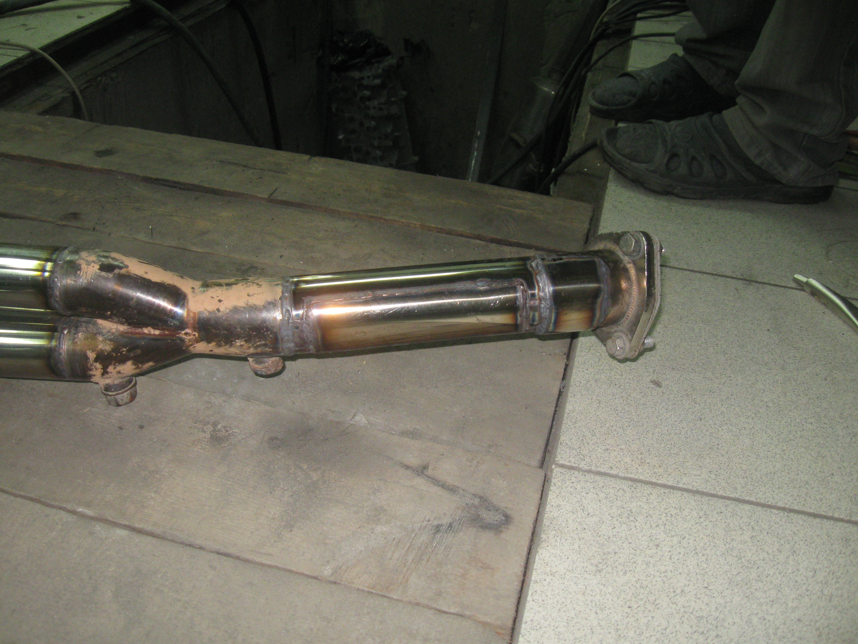 да хреновато. Заводские швы видать без присадка сварены, так как подогнаны идеально. Я варил без поддува газа в трубу, подогнаны торцы труб были не очень - пришлось насирать коегде. Хули, в полвторого ночи тока закончили. Зато смеха было на весь вечер. Ну и общую трубу нержавейку ф60 сделали из ф50, плохо Витя не зафотал процесс :)
