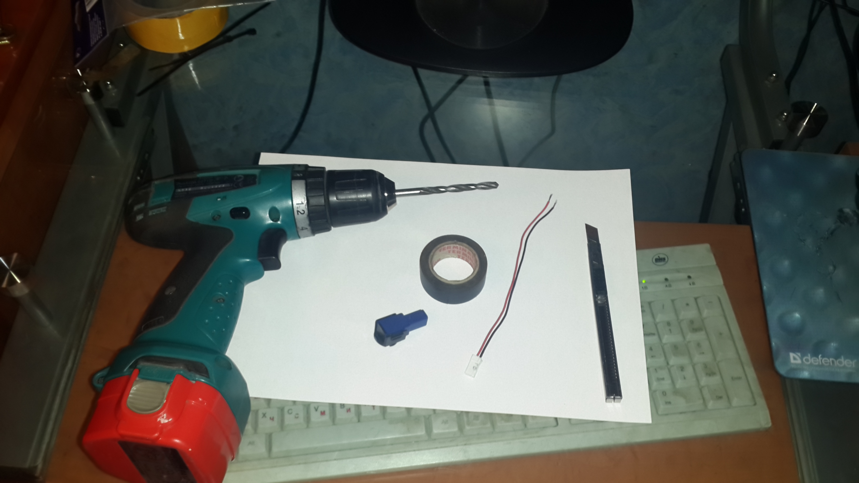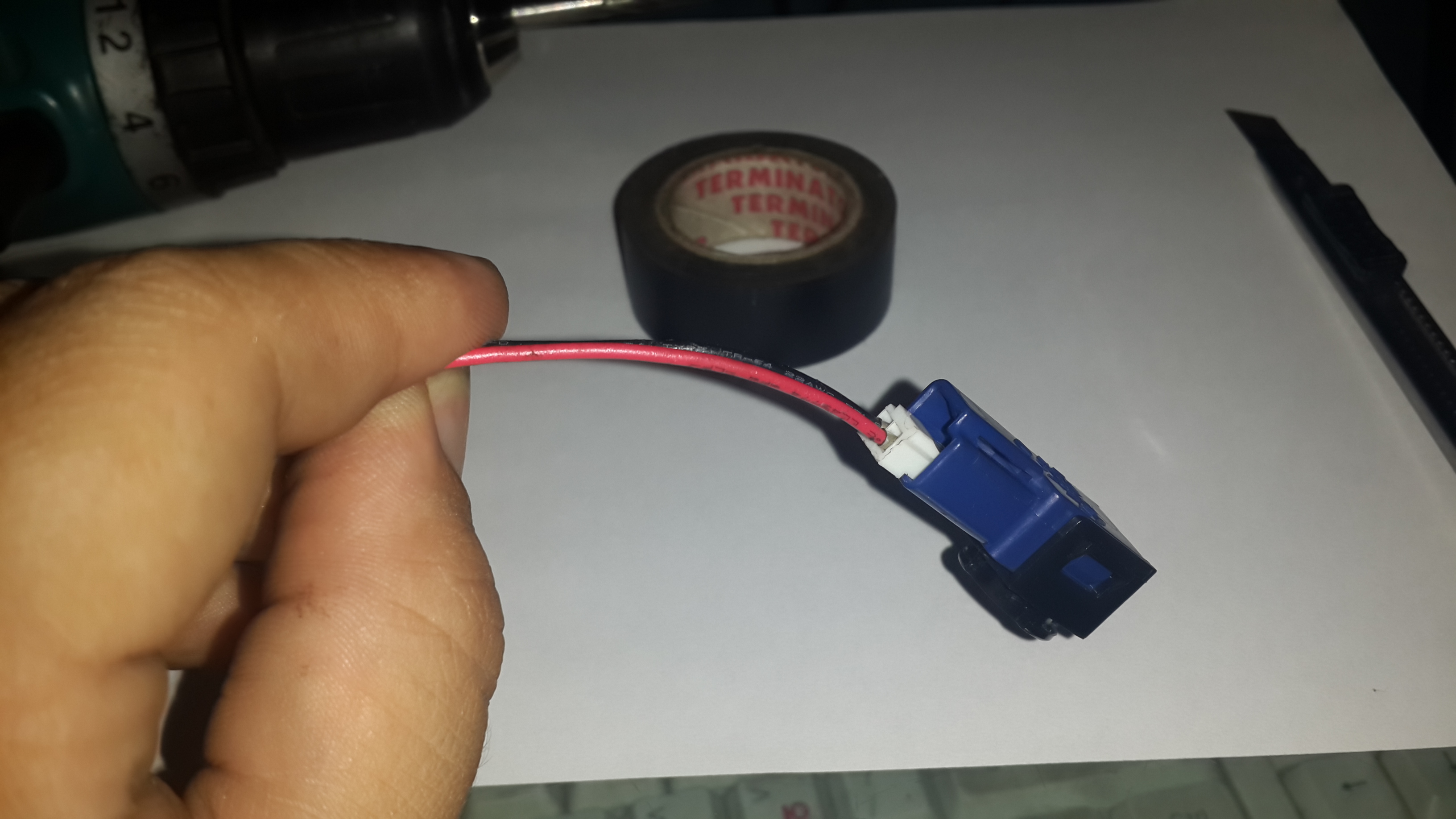 2х пиновый разъём (я взял старый блок питания от ПК и отрезал от него более мение подходящий… и дострагал ножичком чтоб плотно сидел в фике светодиода :)