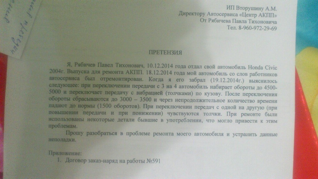 для начала он не стал соглашаться с претензией ссылаясь на то что он этого не видит не чувствует,поехали прокатились с ним,удалось пару раз показать легкие рывки на малых оборотах,при понижении и повышении,удалось показать что при кикдауне обороты после того как отпустили педаль газа держаться сами по себе пару секунд,удалось показать пинок с 1 на 2