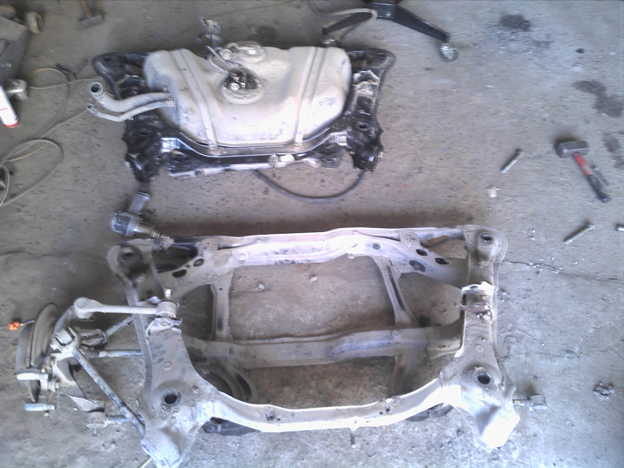 ёёёёё... Чота я давно не видел машину, на которой НАСТОЛЬКО бы всё ломалось и не откручивалось... 6.5 часов ушло на выпиливание и высверливание шести болтов.. Ну и Сане Ф20Б отдельное "спасибо" за подрамник с заломанными болтами