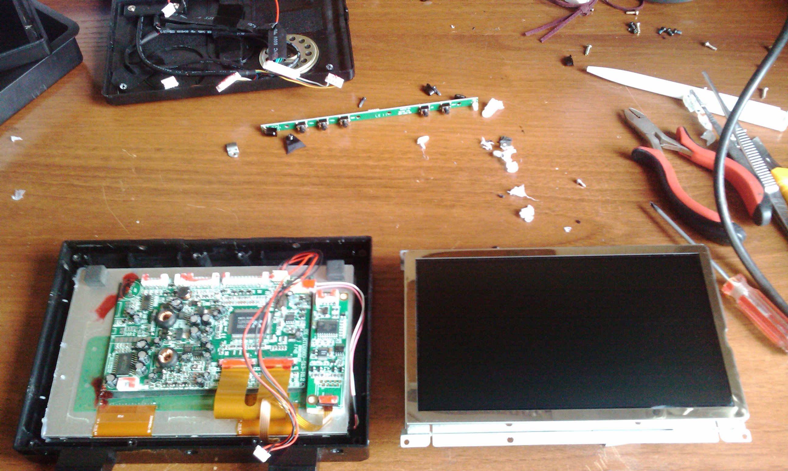 Заменил штатный дисплей на VGA монитор с тачскрином. Для этого разобрал оба монитора.