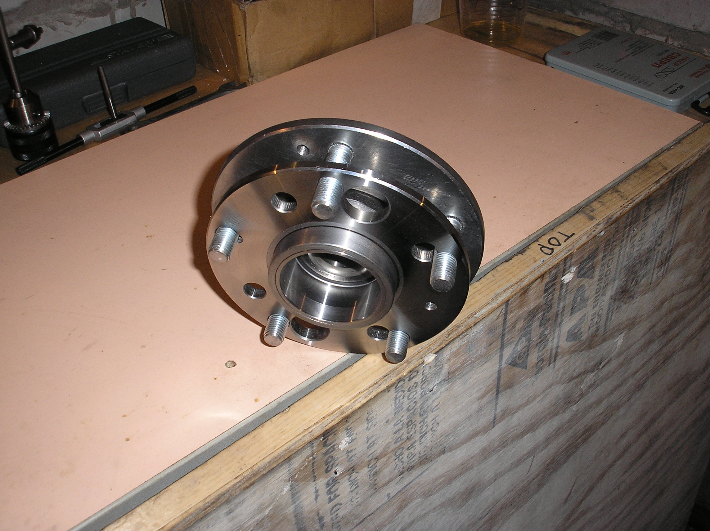 Дальше страшнее %) Координатчик нафигачил отверстия 5х114.3. Получился знатный кусок сыра, в таком виде конечно зашпилить этот подшипник нельзя.