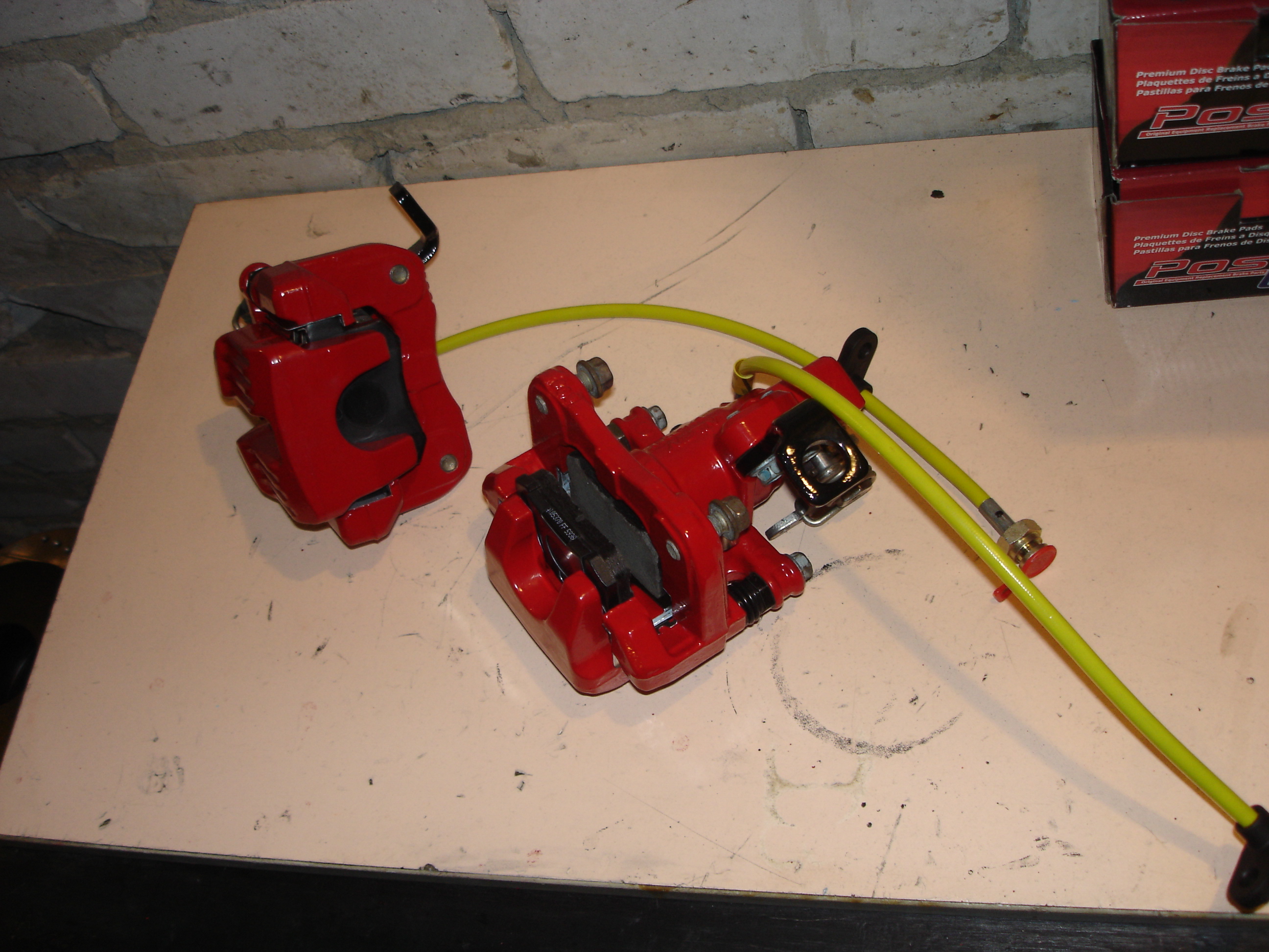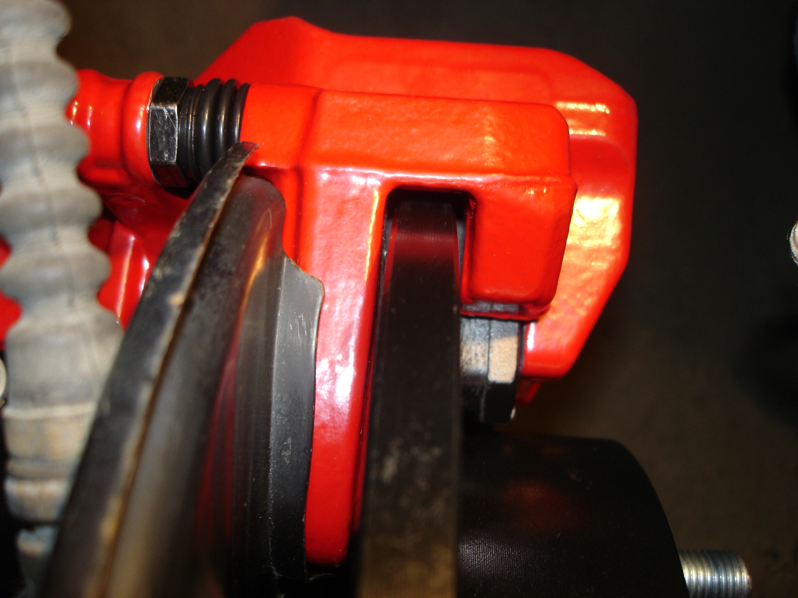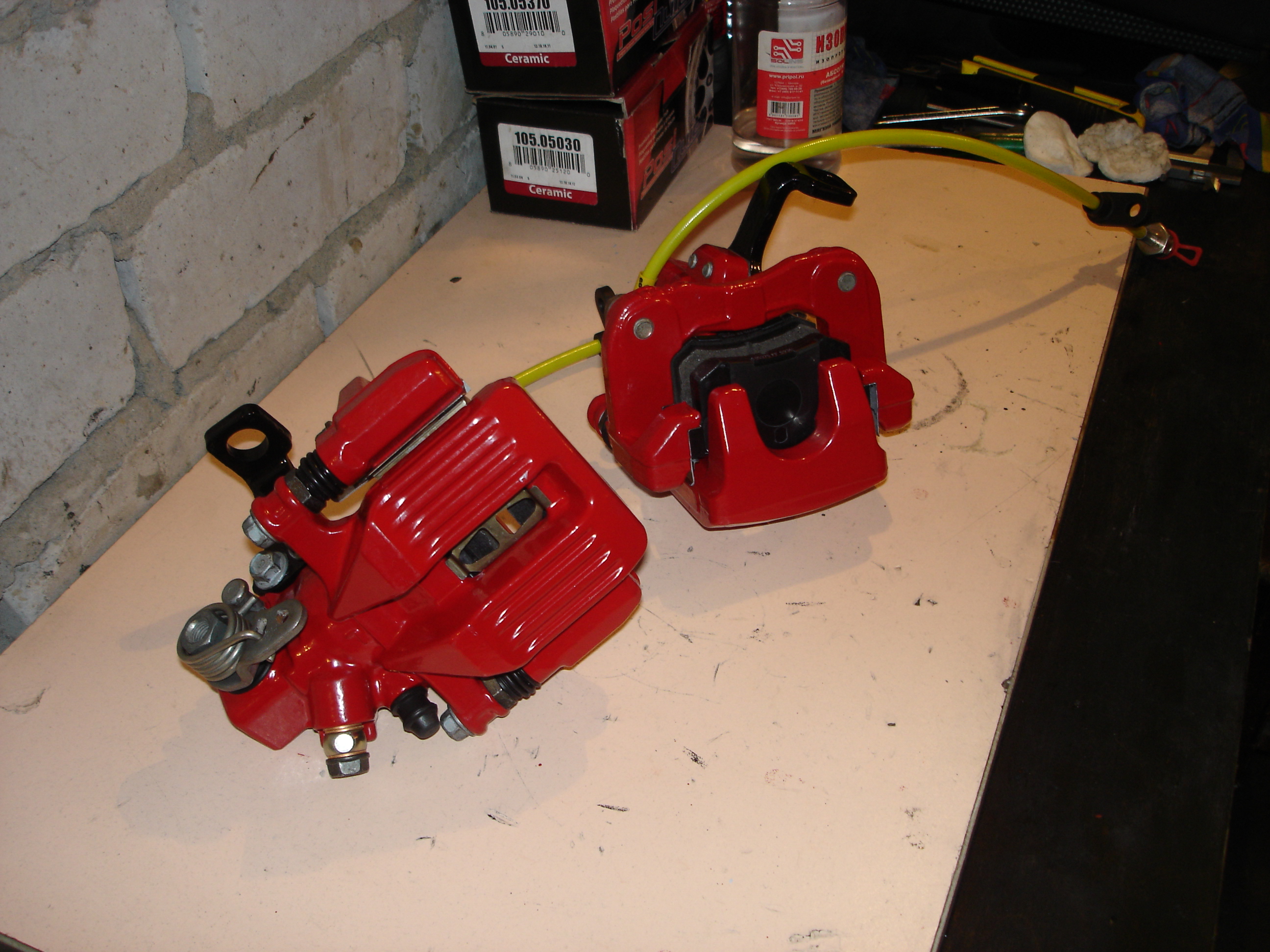Задняя скоба после ребилда. Резинки пыльников снаружи обработал силиконом, начитался форумов разных. Ну и ага, вслед за передом разобрал я и задние супорты, и перекрасил их тоже